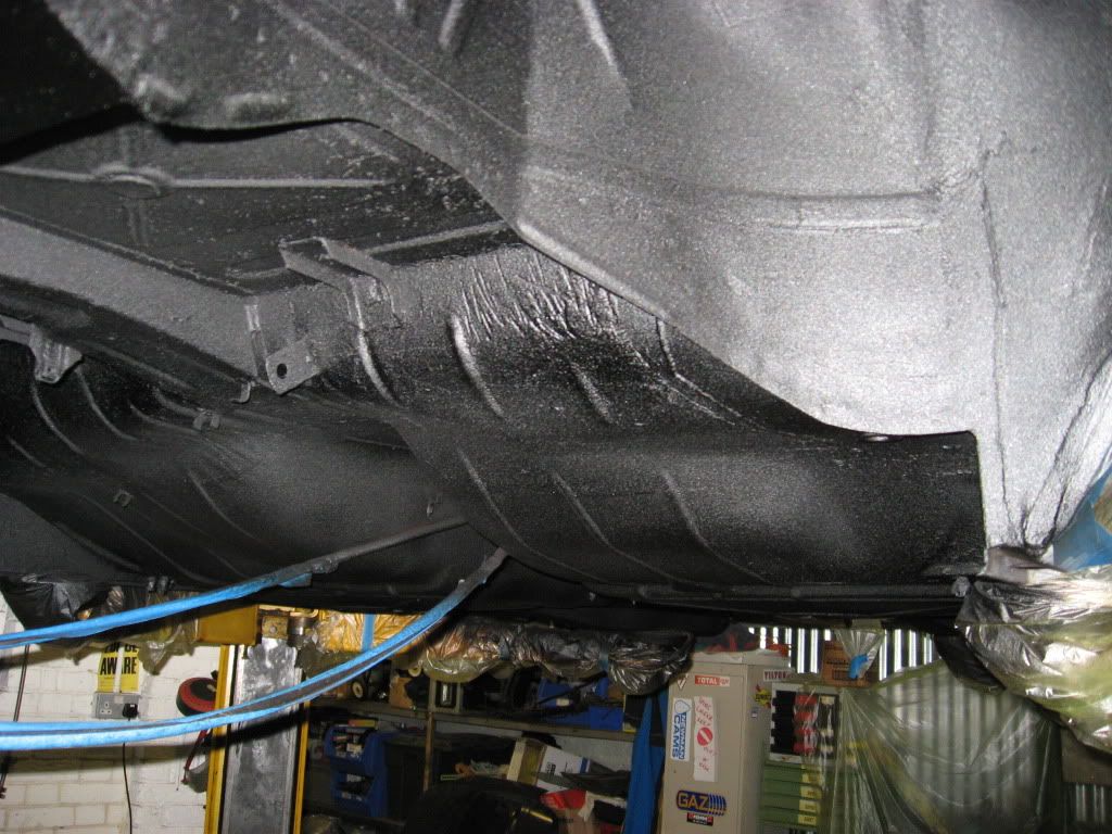Based on the advise of DINITROL I bought there 'big car kit' and this included 4 'shutz' type cans of cavity wax and 6 cans of underseal, plus a gun and rust converter, etc. I lavishly applied the cavity wax - and still have a bit to do on the inside of the doors, bonnet and boot. I also whacked the underseal on - consentrating on getting a good think coat in all the edges, joints and lips, then building up coat after coat until I had used all the product and had a nice thick finish.